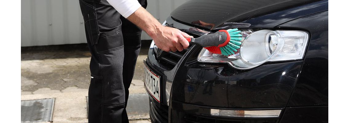 Vikan velmi efektivní oválný kartáč s průtokem vodya s ochraným gumovým lemem proti poškození automobilu.
