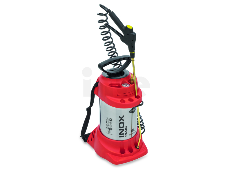 Částečně oplastovaná nerezová nádrž o objemu 6 l. Dodává se včetně popruhu na rameno.