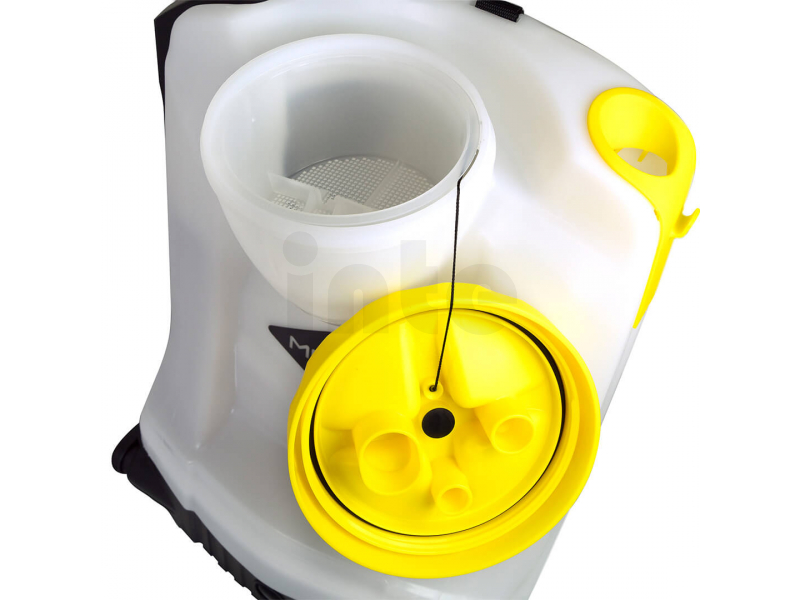 - Extra velký plnicí otvor se sítkem s plnicím víkem s integrovanou odměrkou a ochranou proti ztrátě. Díky drenážnímu kanálu odtéká veškerá rozlitá kapalina z vašich zad.