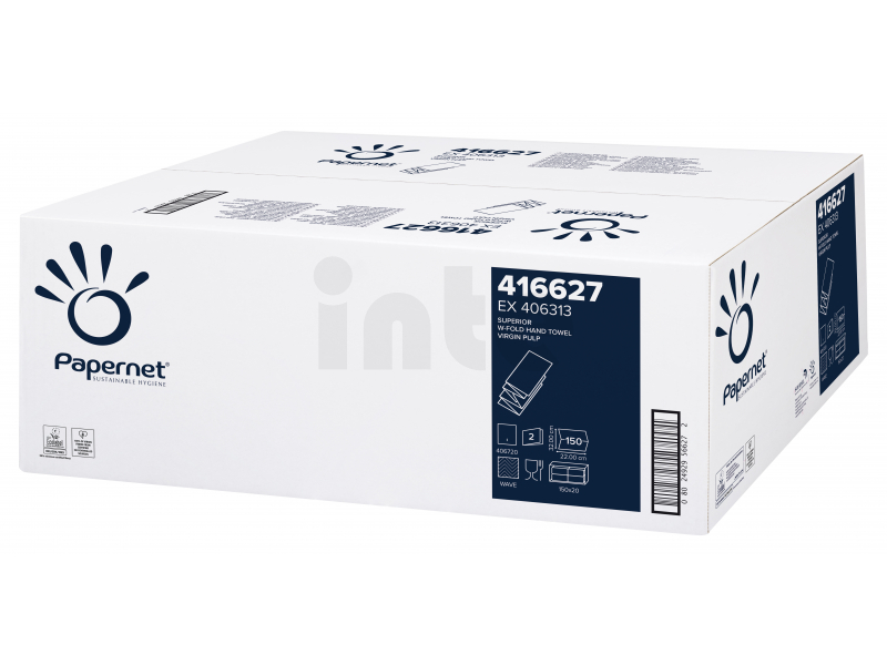 PAPERNET - Bílý skládaný ručník do "W" SUPERIOR, 2 vrstvý, 150 útržků, 3000 ks = 1 karton - 416627