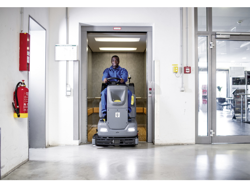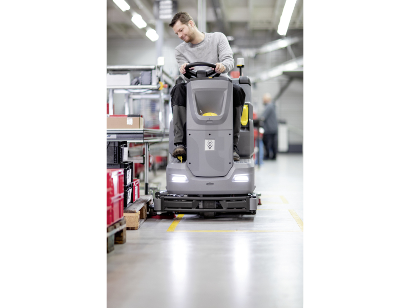Bateriový mycí stroj KÄRCHER B 110 R je vybaven osvědčenou technikou válcového kartáče, která umožňuje rychlé a důkladné čištění s pracovní šířkou 75 centimetrů a integrovanou funkcí zametání v jednom kroku. Pro úsporu zdrojů je stroj vybaven systémem dávkování čisticího prostředku DOSE a dávkováním vody v závislosti na rychlosti. Inovativní funkce Auto-Fill umožňuje pohodlné a časově úsporné automatické plnění 110litrové nádrže na čerstvou vodu. Velký barevný displej, ovladatelný ve 30 jazycích, umožňuje snadné nastavení všech důležitých parametrů. Pro prevenci provozních chyb je zde inovativní systém klíčů KIK, který umožňuje přiřazení individuálních přístupových práv každému uživateli. Vysoká úroveň jízdního pohodlí a zvýšené bezpečnosti je zajištěna flexibilním nastavením výšky sedadla a denními světly. Volitelně je k dispozici boční kartáč pro rozšíření pracovní šířky a čištění blízko okrajů.