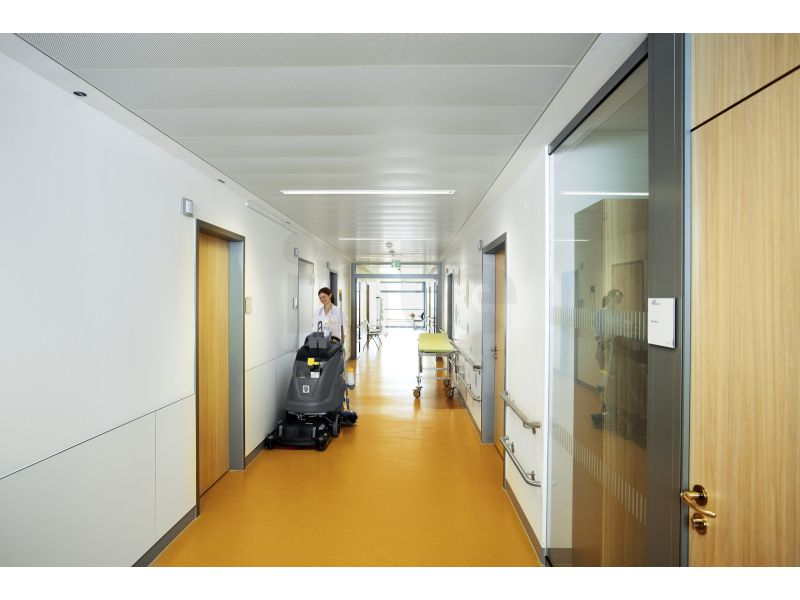 Ručně vedený podlahový mycí stroj s odsáváním KÄRCHER B 60 W Bp s pohonem, systémem klíčů KIK a vyplachováním nádrže nabízí komfort i snadnou a bezpečnou manipulaci. Kartáčová hlava s kotoučovou technikou D 65 (pracovní šířka 65 cm) a počet otáček až 180 ot./min předurčuje stroj pro čištění nestrukturovaných podlah s plošným výkonem až 2.500 m². Přítlak kotouče je nastavitelný, přičemž hlavu i kotouč rychle namontujete i vyměníte. Systémem klíčů KIK jsou udělována přístupová práva k zamezení chybných kroků obsluhy. Stupeň eco!efficiency zásadně prodlouží dobu chodu baterie a systém vyplachování nádrže zjednoduší čištění nádrže na špinavou vodu po vyčištění podlahy. To vše završuje funkce Auto Fill pro jednoduché a časově nenáročné plnění nádrže na čistou vodu. Navíc se sací lišta tvaru V o pracovní šířce 900 milimetrů postará o odsávání nečistot beze zbytků i při jízdách v zatáčkách.
