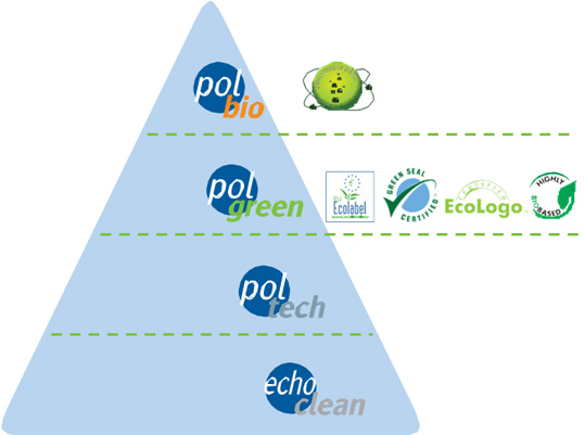 Společnost se začala specializovat na ekologické produkty šetrné k životnímu prostředí označené symbolem Ecolabel. Firma Pollet je jedním z mála výrobců, kteří nabízejí rozsáhlou řadu profesionálních produktů oceněných třemi ekologickými certifikáty uznávanými po celém světě: Evropská označení ECOLABEL, ECOLOGO a GREEN SEA. Produkty firmy Pollet splňují i standard BIOBASED, který dokládá, že suroviny pocházejí z obnovitelných zdrojů.