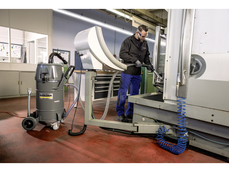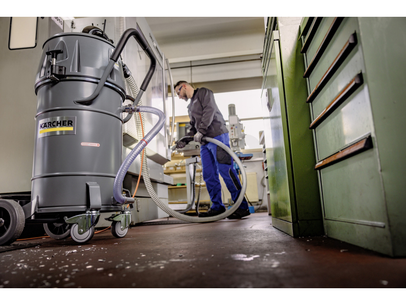 Průmyslový vysavač Kärcher IVR-L 65/12-1 je nejmenším modelem z řady IVR-L, navrženým pro efektivní vysávání a separaci kapalin a pevných látek. S výkonem motoru 1,2 kW je ideální pro kovoobráběcí průmysl, kde zvládne vysávání malého množství chladicích kapalin, maziv, vody nebo oleje společně s kovovými třískami. Třísky jsou zachycovány do integrovaného koše na třísky, zatímco kapaliny lze snadno vypouštět zpět do oběhu přes vypouštěcí hadici, která zároveň zobrazuje stav naplnění.