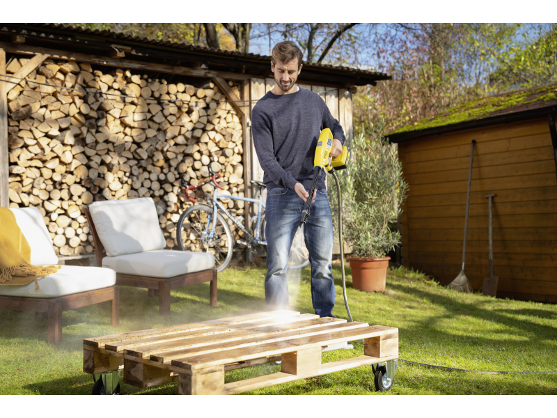 - Tlak 21 barů pro efektivní, mobilní a snadné mezifázové čištění. Jednoduše vyměnitelné trysky . Plochá tryska pro jemné čištění je součástí dodávky.