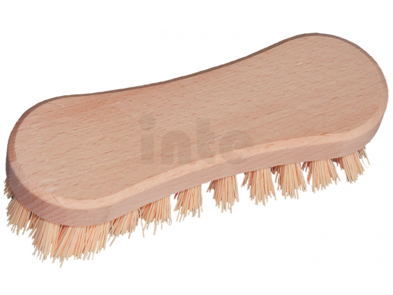 Kartáč podlahový ruční má dřevěné nelakované tělo a vlnitá syntetická vlákna.