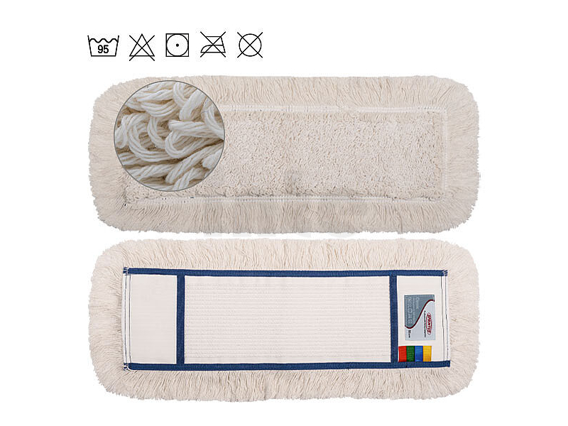 Mop obsahuje standardní potah, vodopropustné kapsy a je rozměrově stabilní, což usnadňuje jeho použití. Další výhodou je možnost čtyřbarevného kódování, které umožňuje snadné rozlišení mopu dle oblastí použití nebo hygienických norem.