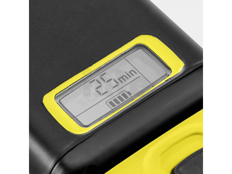 Vyměnitelná baterie Kärcher 36 V / 2,5 Ah je vhodná pro použití ve všech zařízeních platformy Kärcher 36 V Battery Power. Díky Real Time Technology s LCD displejem je vždy zobrazena zbývající provozní doba, zbývající doba nabíjení a stav nabití - v závislosti na použitém zařízení. Vysoce výkonné lithium-iontové články poskytují konzistentní výkon a zajišťují, že se akumulátor nevyprázdní nebo neztratí svou kapacitu v důsledku častého částečného vybití (paměťový efekt).
