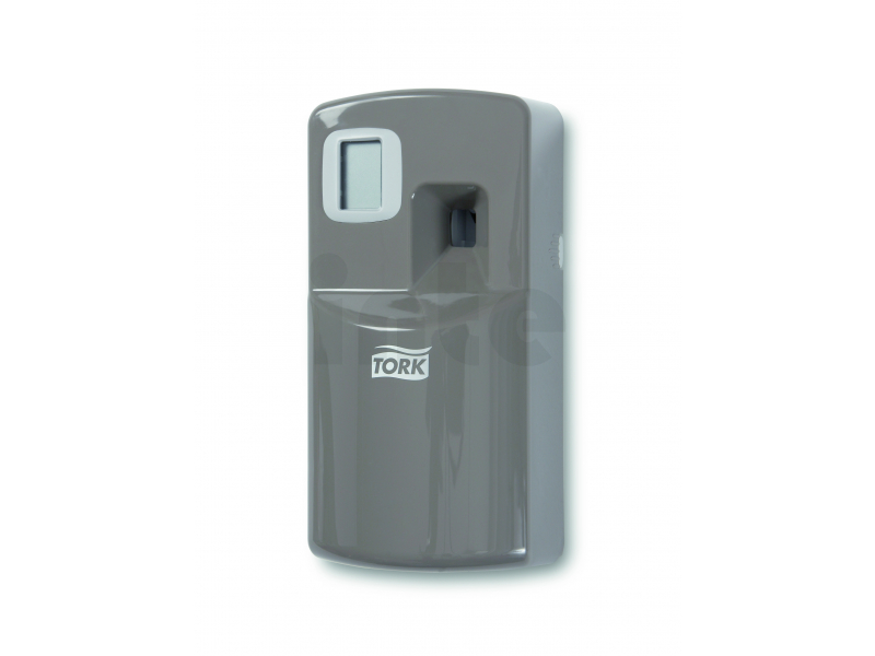 TORK elektronický osvěžovač vzduchu v šedé barvě je navržen tak, aby ladil s řadou TORK Image Line a hodil se na toalety a umývárny s tmavým obložením.