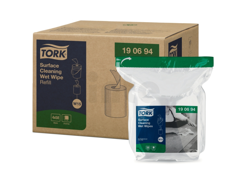 Tork vlhčené utěrky na čištění povrchů jsou vhodné k účinnému čištění povrchů, rukou a nástrojů. Produkt lze snadno a efektivně doplňovat.