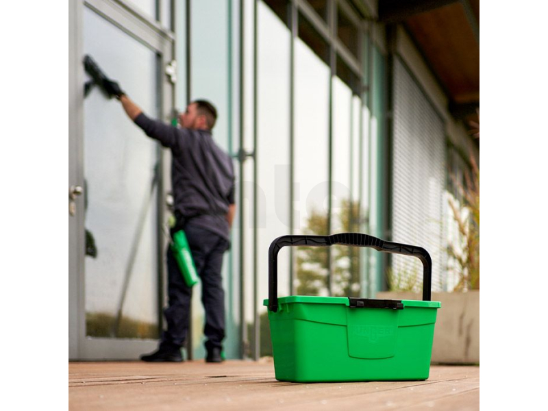 Teto 12 litrový kbelík je nezbytným doplňkem pro každého profesionálního myče oken. Toto klasické, obdélníkové vědro bylo vylepšeno o mnoho praktických detailů pro usnadnění každodenní práce. Kbelík poskytuje dostatek prostoru pro všechny potřebné nástroje pro mytí oken jako jsou rozmýváky oken a stěrky. Nová ergonomická rukojeť s vertikálním polohováním Vám velmi usnadní práci.