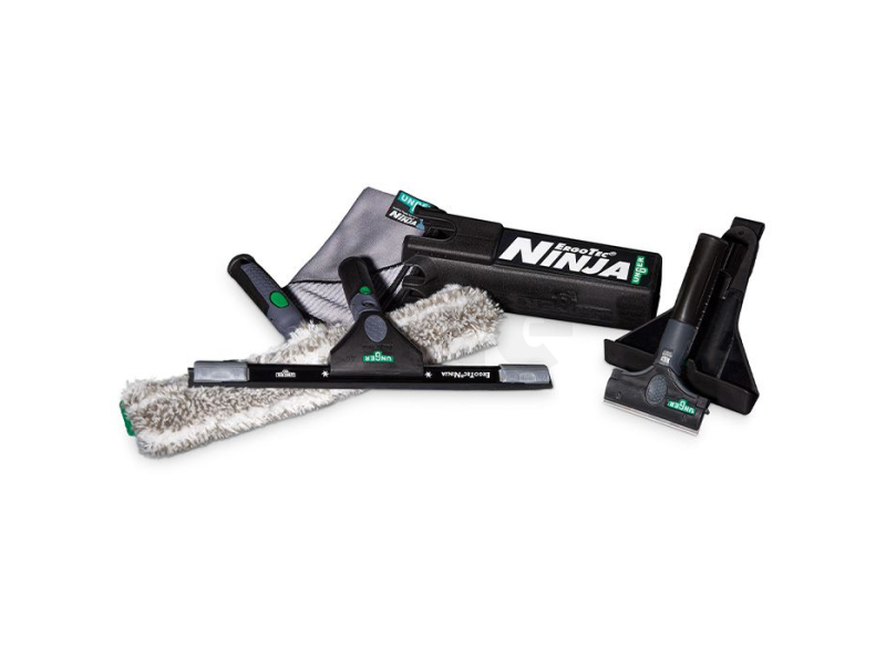 Pokud hledáte prémiovou kvalitu, pokud jde o zařízení na čištění skla, nemůžete ignorovat kompletní sadu ErgoTec NINJA 6v1 od UNGER. Šestidílná kompletní sada má vše, co specialista potřebuje k čištění skla. Tato sada rozbuší srdce každého profesionálního čističe budov a slibuje ty nejlepší výsledky čištění oken v budovách všeho druhu, od velkých po malé.