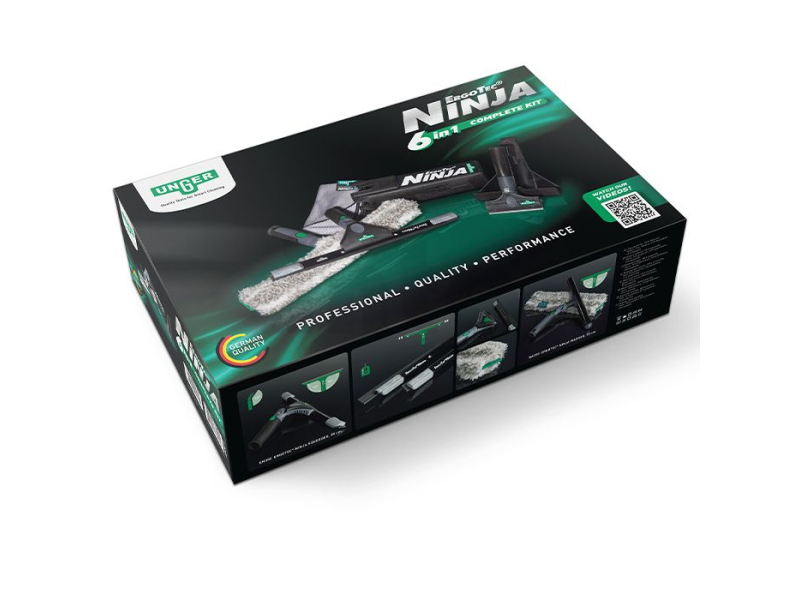 Rozsáhlé know-how v oblasti technologií, inovací a dlouholeté zkušenosti v oblasti úklidu budov charakterizují UNGER. S kompletní sadou ErgoTec NINJA 6v1 získají komerční čističi oken i majitelé a montéři úklidových firem kompletní špičkovou sadu na čištění skla pro svou profesionální skupinu. Všechny produkty usnadňují a usnadňují každodenní práci díky individuálním možnostem nastavení.