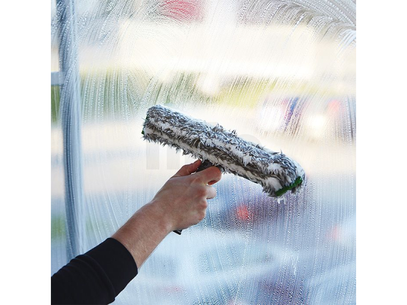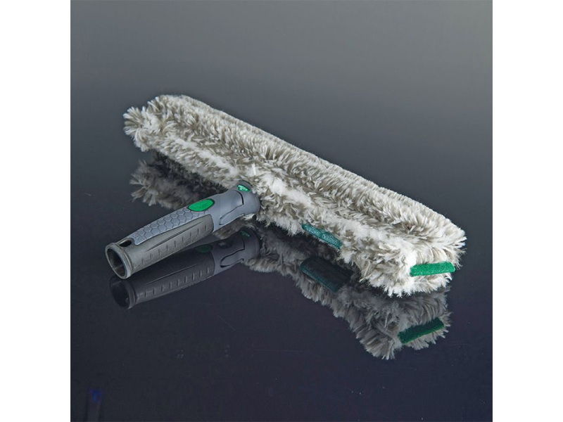 Ať už autobazar, výloha nebo moderní kancelářská budova s velkými prosklenými fasádami – čištění velkých okenních ploch vyžaduje od profesionálního čističe oken rychlost a přesnost. Vaše vybavení je nezbytné, protože čas jsou peníze. S profesionálním rozmývákem se i ty největší nečistoty na okně stávají tím nejmenším problémem. To zajišťuje potah z mikrovlákna vysoce kvalitního nástroje na čištění skla s chytrým mixem různých vláken: drhnoucí vlákna uvolňují nečistoty, zatímco delší vlákna absorbují hodně vody a uvolňují ji na povrch. Boční čisticí podložky uvolňují odolné inkrustace.