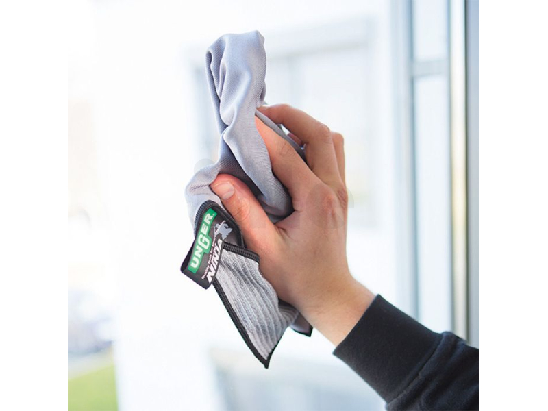 Nejkvalitnější utěrka z mikrovlákna od UNGER zajišťuje lesk a konečný dotek při čištění skel a oken a také na okenních rámech. Velmi hustě tkaný materiál přesvědčí v suchých i mokrých podmínkách. Jeho statické vlastnosti přitahují prach při suchém čištění. Utěrka z mikrovlákna je ideální pro leštění velkých ploch. Z jeho vláken neunikne ani nejmenší kapka vody a utěrka z mikrovlákna s drhnoucími umyvadly odstraní drobné nečistoty téměř bez námahy. Utěrka z mikrovlákna má extra zesílené okraje a díky vysoké tloušťce materiálu je velmi odolná - s přibližně 500 cykly praní. Zvláště chytré: Do rohových kapes lze snadno zavěsit teleskopickou tyč nebo upnout okenní stěrku, takže lze dokonale vyčistit i těžko přístupná místa.