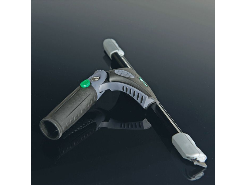 Profesionál si může vybrat mezi dvěma výškovými polohami pro dokonalé rozložení tlaku gumy stěrače.Stěrky v různých délkách od 20 cm do 105 cm lze připevnit k nástroji na čištění skla pro čištění mnoha malých oken nebo velkých ploch. Stejně chytré: speciální sklon hlavy o 40 stupňů a funkce otáčení s aretačním mechanismem.