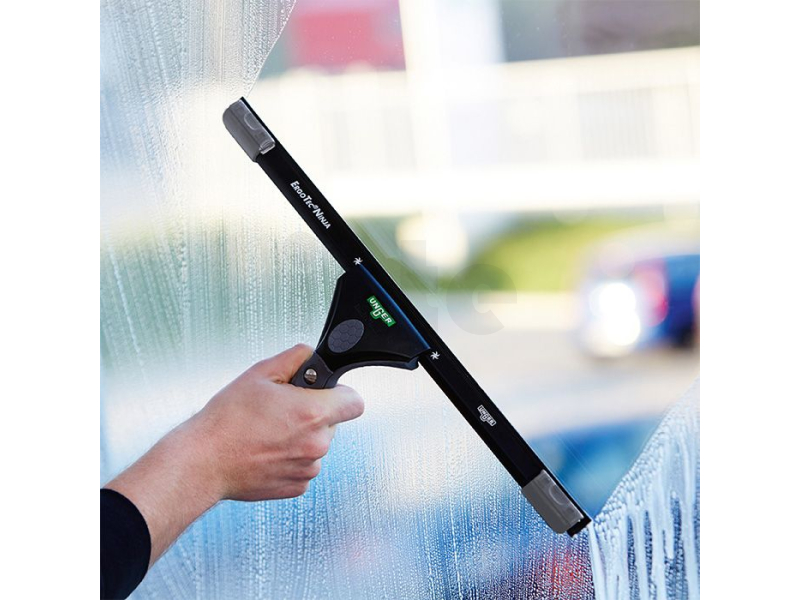 Profesionální čističi budov přísahají na svou stěrku. Je to nejdůležitější nástroj v toulci. Okenní stěrka ErgoTec NINJA splňuje všechny profesionální požadavky. Jeho high-tech hliníková lišta T6 zabraňuje ohýbání a dokonale drží stěrku na okně. Praktický klipový mechanismus fixuje vysoce výkonnou gumu a umožňuje tak snadné opětovné napnutí.