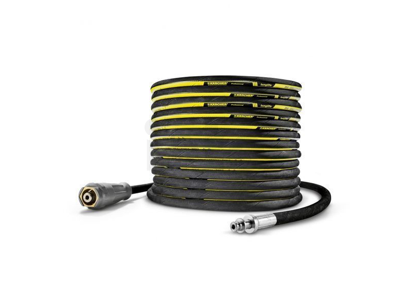 Vysokotlaká hadice Longlife 400 (DN 8) s patentovanou přípojkou AVS v pistoli (otočné uložení) a ručním šroubením, 20 m. Ochrana proti zlomení M 22 x 1,5 m. S dvojitou ocelovou vložkou z ocelového drátu pevného v tahu. Další údaje: NW 8/155°C/400 bar.Více informací