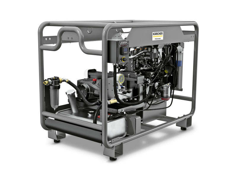 Ultra vysokotlaký čistič KÄRCHER HD 9/100 De Skid s dieselovým motorem STAGE V a robustním stacionárním rámem (Skid), vhodný na použití tam, kde nejsou zajištěny externí dodávky elektrické energie.