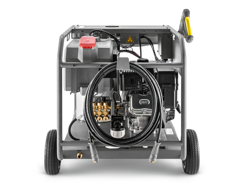 Vysokotlaký čistič HDS 8/20 G s objemem vody 800 litrů za hodinu a pracovním tlakem 200 barů působí působivě, i když čelí nejnáročnějším požadavkům na čištění ve strojírenství, dopravě, v obcích a ve stavebnictví. Čistič je poháněn výkonným benzínovým motorem, který nepotřebuje externí napájení, a dokonce odstraňuje tvrdou kontaminaci způsobenou například graffiti nebo mazivy. To je zajištěno vysoce účinnou a odolnou technologií hořáku a také robustním čerpadlem klikového hřídele. Integrovaná 20litrová palivová nádrž poskytuje dlouhou dobu provozu. Pro ochranu všech důležitých komponentů je HDS 8/20 G vybaven celou řadou bezpečnostních technologií, jako je termo a bezpečnostní ventil, velký vodní filtr, monitorování teploty výfukových plynů a systém měkkého tlumení (SDS). Vysoká ergonomie, mobilita, robustnost a uživatelská přívětivost jsou mimo jiné zajištěny pneumatikami odolnými proti propíchnutí, řídicím válečkem s parkovací brzdou, přepínačem s jediným tlačítkem a robustním trubkovým ocelovým rámem. Příslušenství, jako je vysokotlaká hadice a přívodní trubice, lze snadno uložit přímo na stroj.