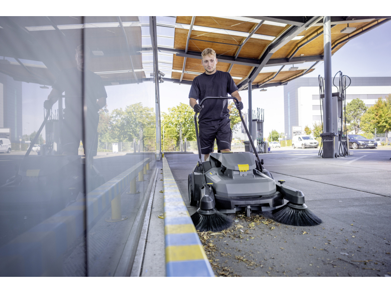 Ručně vedený zametací stroj KM 70/25 C BP 2SB je efektivním a účinným řešením pro úklid tvrdých povrchů v interiéru i exteriéru. Zametací válec a boční kartáče jsou napájeny baterií a výrazně zvyšují komfort práce: uživatelé mohou bez námahy zametat rohy a těžko přístupná místa s výrazně menší potřebou síly. Pěnový filtr s pasivním odsáváním snižuje prašnost a udržuje pracovní prostředí čisté. Zametací válec lze nastavit v šesti stupních a přizpůsobit tak jeho čisticí výkon různým povrchům. Práci usnadňuje praktický systém Home Base na další vybavení, jako jsou kbelíky a sběrače odpadků. Jednoduchá je také údržba, k výměně bočního kartáče a filtru není potřeba žádné nářadí. Bateriová platforma Kärcher Battery Power 36 V poskytuje dostatečný výkon v každé situaci. Vyměnitelná baterie lze vyjmout pro snadnou přepravu. Baterie a nabíječka nejsou součástí dodávky.