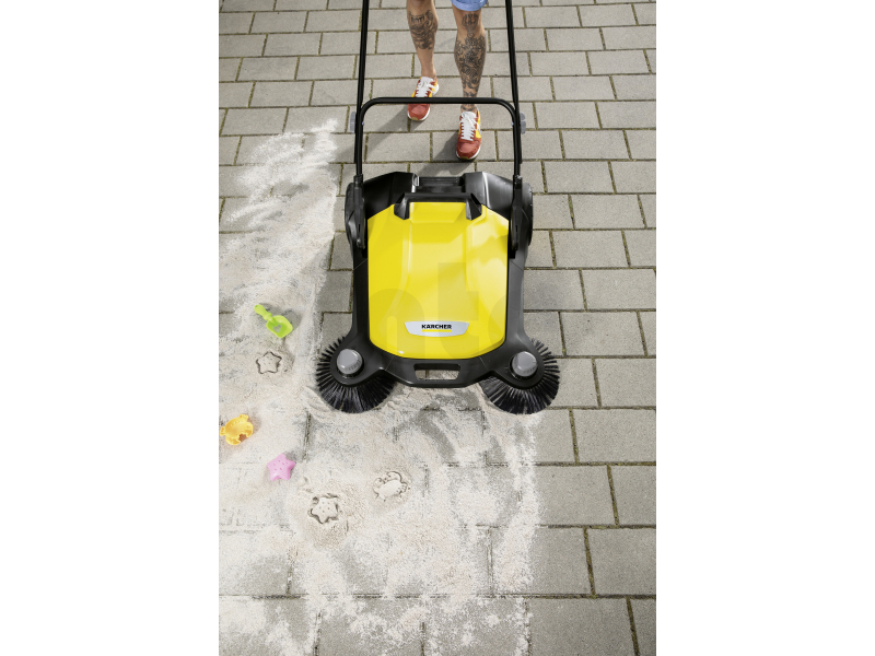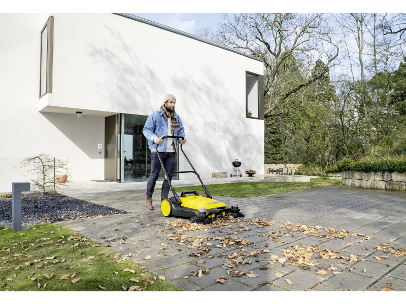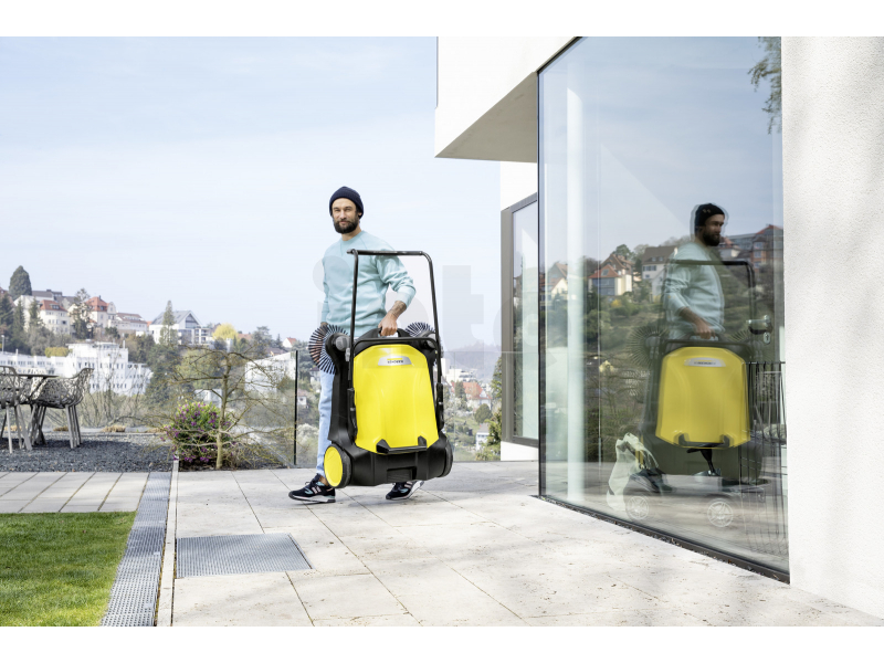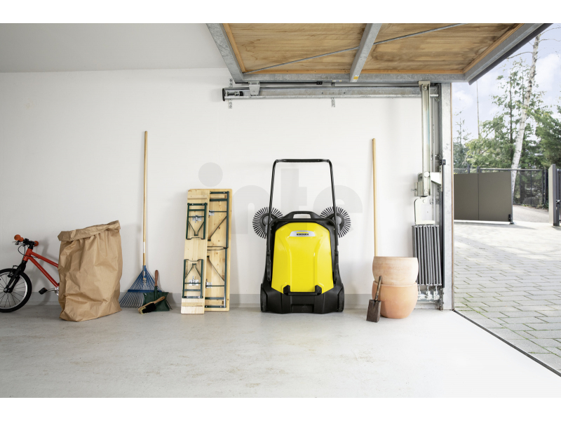 Zametací stroj KÄRCHER S 6 TWIN střední třídy. Čtyřnásobně výškově nastavitelné madlo zametače umožňuje nastavení podle výšky postavy uživatele. V případě potřeby lze madlo plně sklapnout. Tím je umožněno uložení stroje, které nezabírá místo. Dodatečně je izolováno.